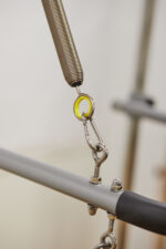 Permite el cambio rápido de posiciones de barra de pies, barra de muelles y poleas. Cuenta con cintas de estabilidad delantera y trasera y fácil de desplazar gracias a las ruedas incorporadas en la parte trasera.
