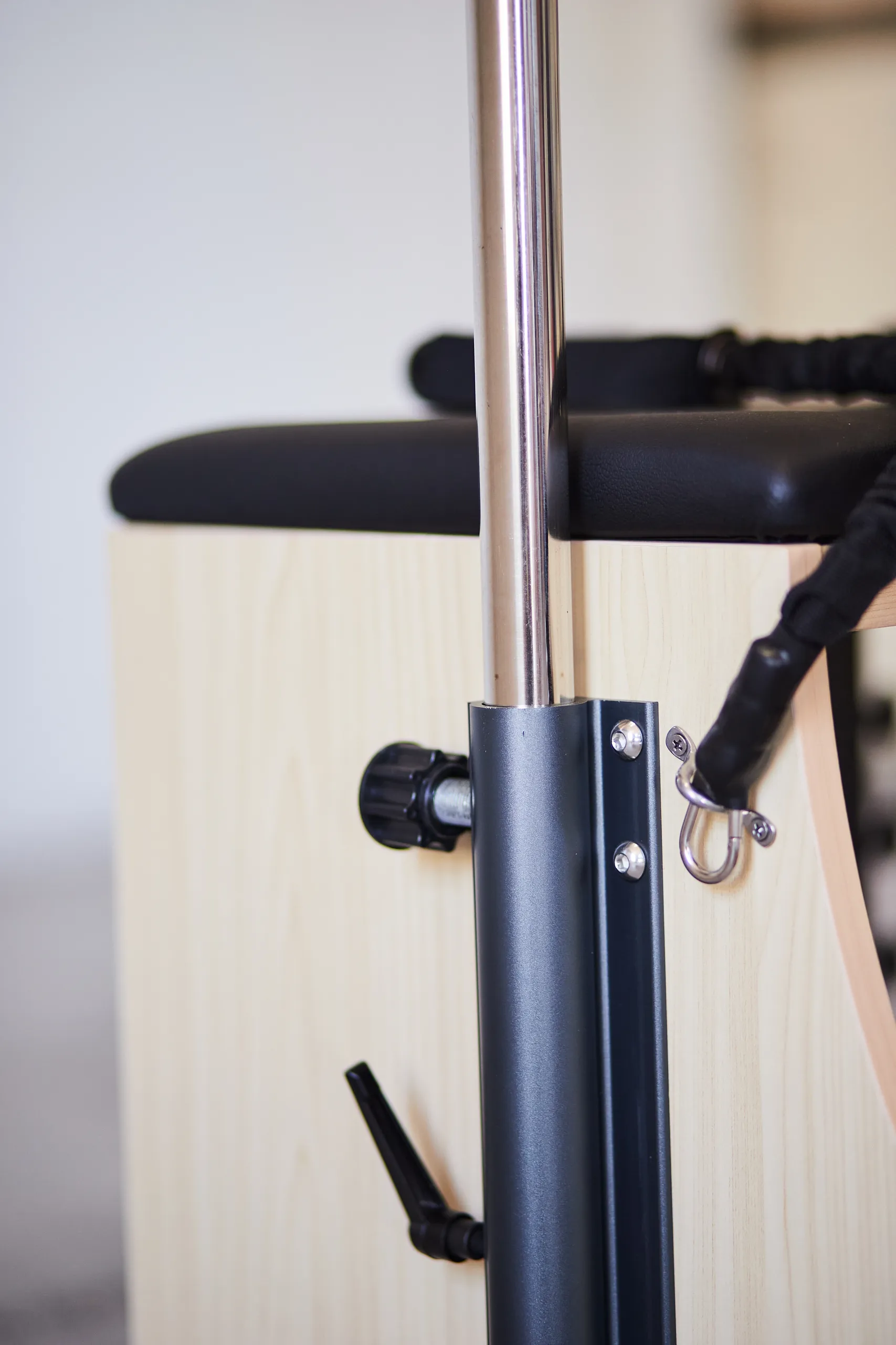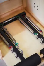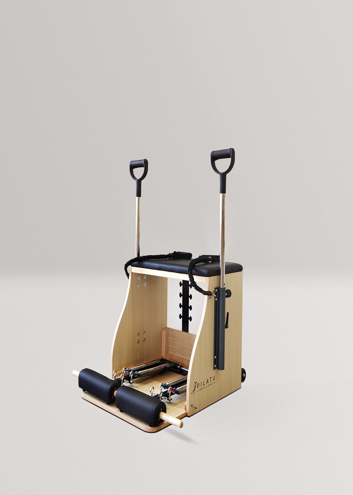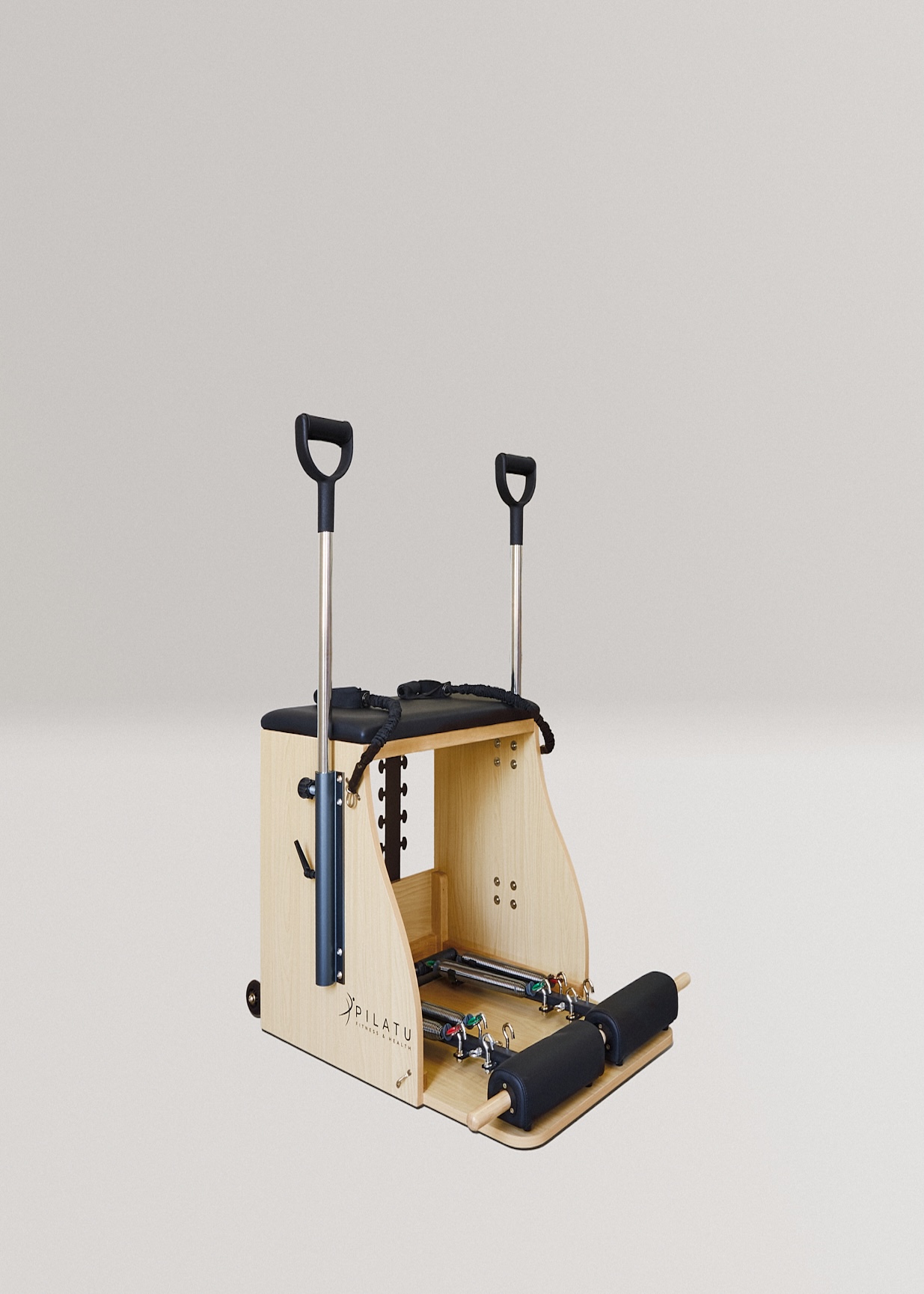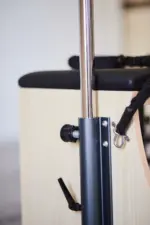 La Silla Combo de Pilates cuenta con un gran estabilidad y resistencia, diseñada con madera de haya de primera Calidad. Está silla lleva las asas incorporadas lo cual permite la realización de un mayor número de ejercicios. Sus pedales acolchados se encuentran divididos en la parte central para permitir el movimiento alternativo del mismo.